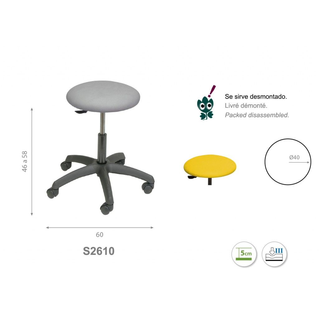Taburete - Taburete giratorio. - Base negra de 60 cm. de diametro. - Regulable en altura por gas: de 47 a 59 cm.