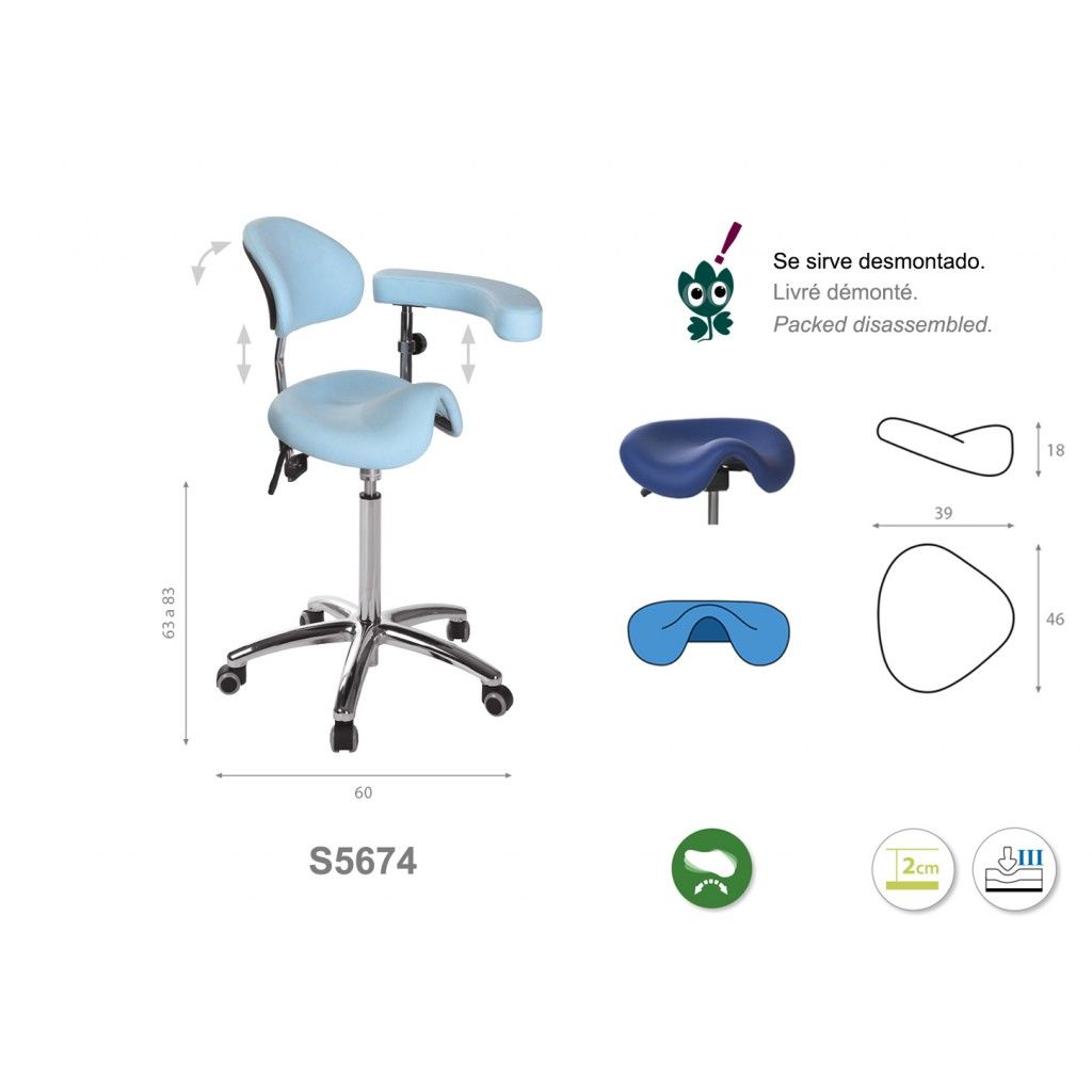 - Regulable en altura por gas mediante accionamiento de pie: de 66 a 86 cm.