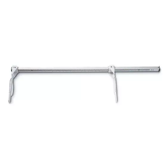 Útil para medir a bebes acostados. El Tallímetro puede atornillarse a la mesa para cambiar pañales (también es posible montaje en pared) o utilizarse como Tallímetro portátil. Sus grandes topes de cabeza y pies facilitan la determinación de la longitud y las lengüetas se pliegan para facilitar su almacenamiento. Fabricado en aluminio que le confiere durabilidad.