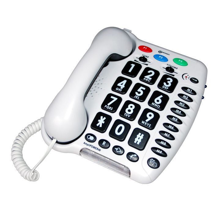 Teléfono Geemarc amplificado Amplipower 40 Blanco - 3 memorias de emergencia - 9 memorias directas - Manos libres - 3 timbres - Botones grandes - Compatible con audífonos