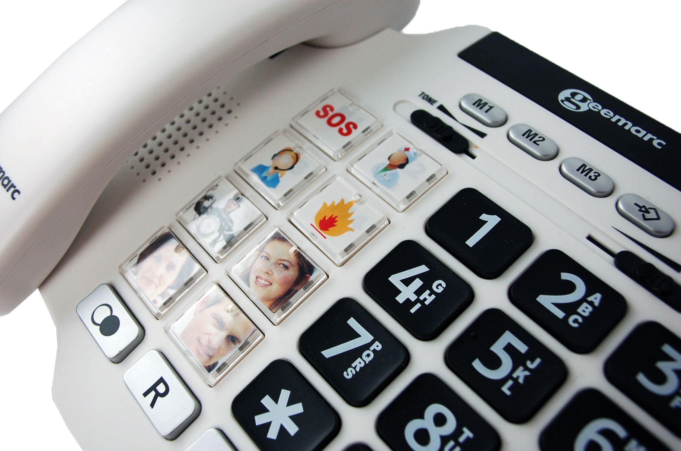 Teléfono Geemarc amplificado Photophone 100 - 8 memorias de imagen personalizados - Manos libres - Ajuste del volumen de recepción hasta 30dB - Botones grandes - Función Flash