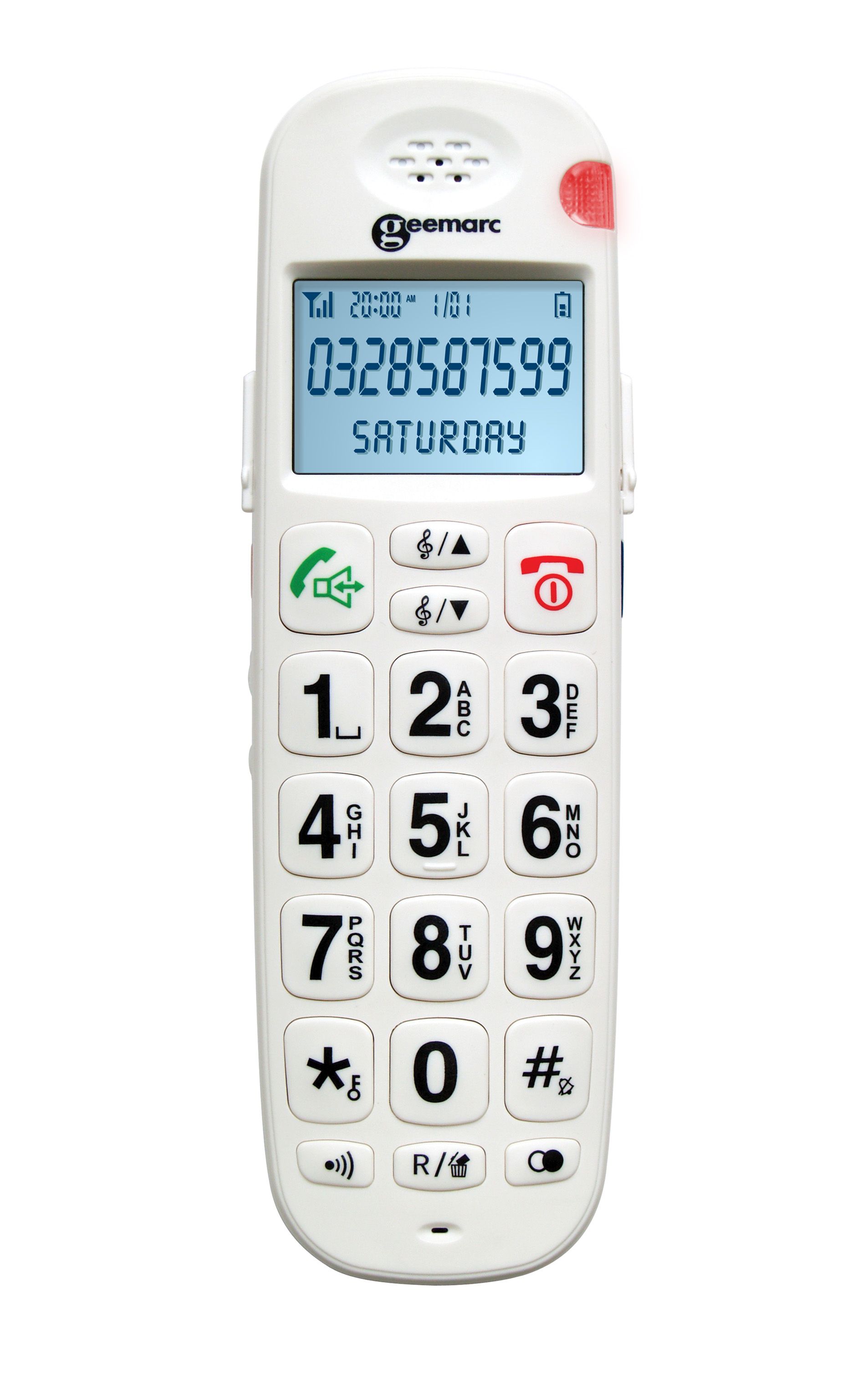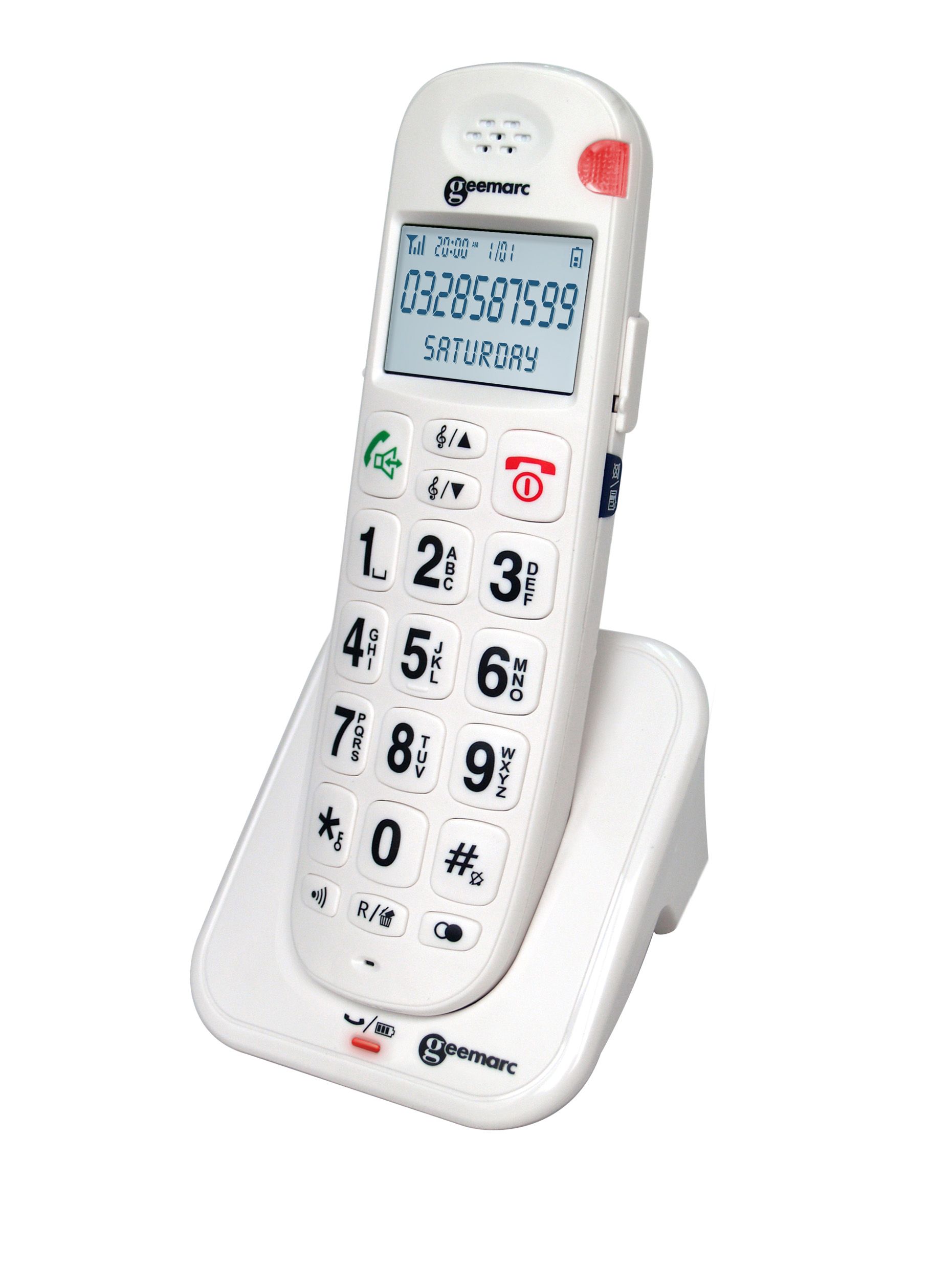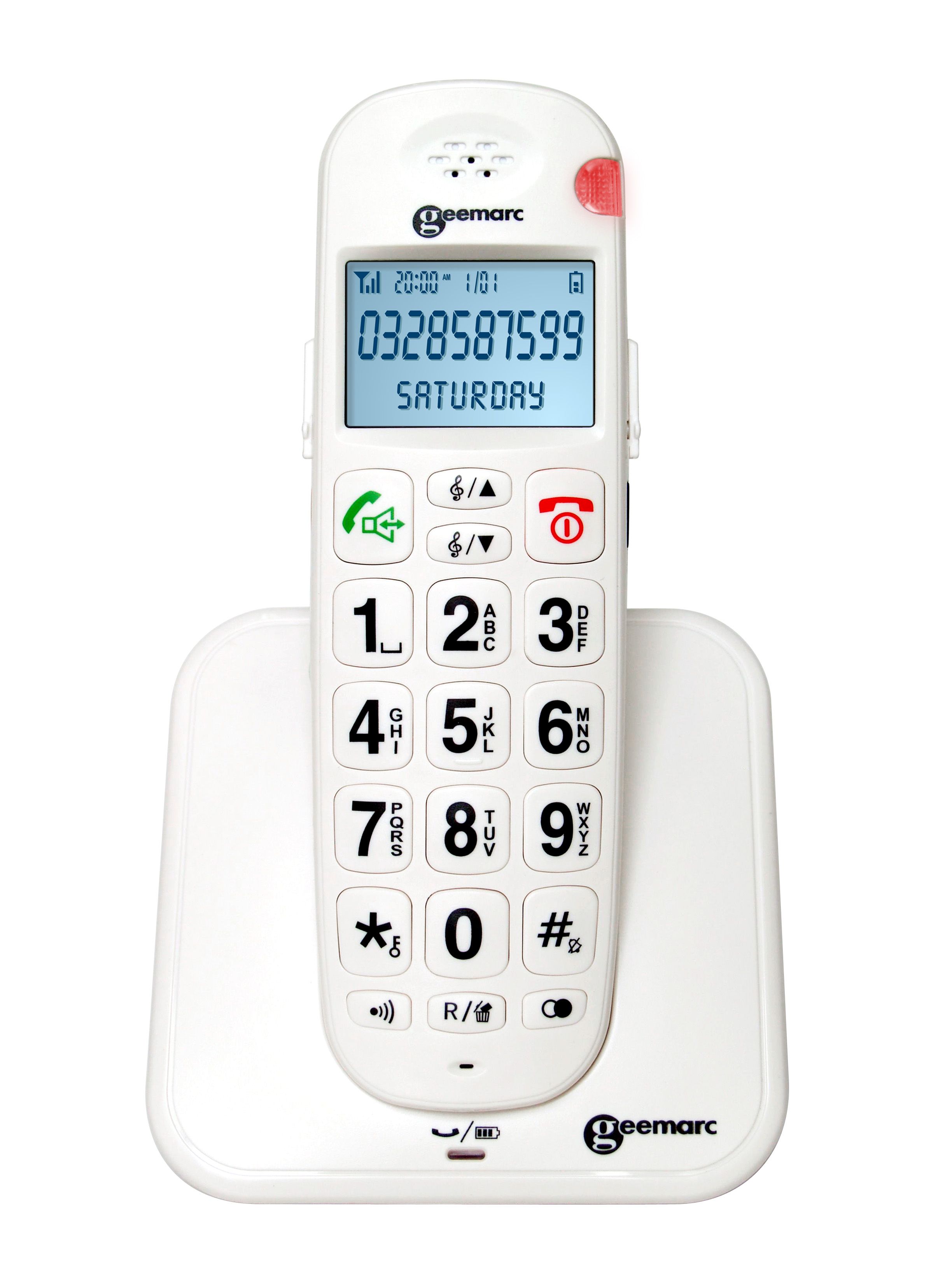El teléfono inalámbrico con ayuda vocal AMPLIDECT260 de Geemarc es un teléfono de teclas grandes. Los grandes dígitos del teclado son de color negro, lo que contrasta perfectamente con el fondo blanco del terminal. Es muy fácil de usar y garantiza una gran autonomía a sus usuarios.