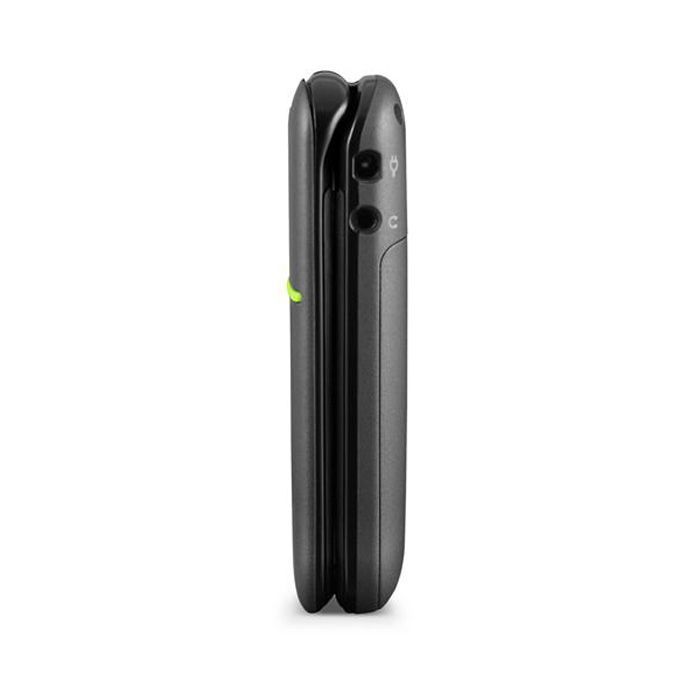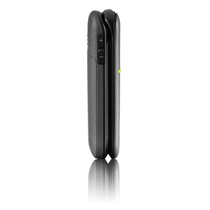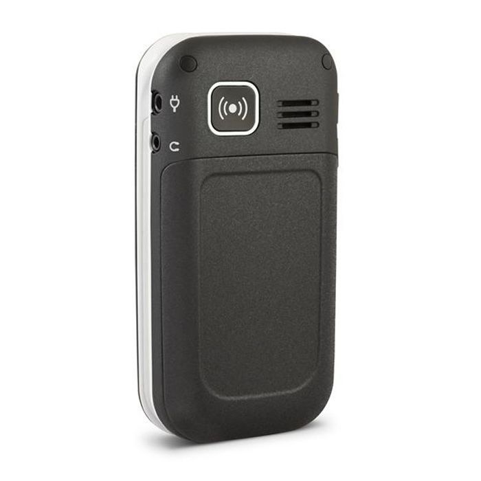 Teléfono móvil básico y plegable con caracteres grandes y botones separados. Entre sus funciones se incluyen la compatibilidad con audífonos y la amplificación de volumen clara y extrafuerte (+35 dB) en aras de una calidad superior del sonido. Asimismo, incorpora una función de emergencia que llama y envía una alarma SMS de forma automática a números predefinidos con tan solo pulsar un botón.