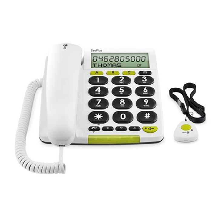 Le teléfono SeePlus 314ci está concebido para las personas que tienen una deficiencia visual. Permite componer los números muy facilmente gracias a su agenda y a su tapadera a largas teclas a vuelta vocal. Las llamadas entrantes están anunciadas por la presentación vocal del apelante y un mando colgante activa la función manos-libres a distancia. Este mando permite también emitir una llamada de emergencia hacia un cercano por un mesaje pre-grabado.