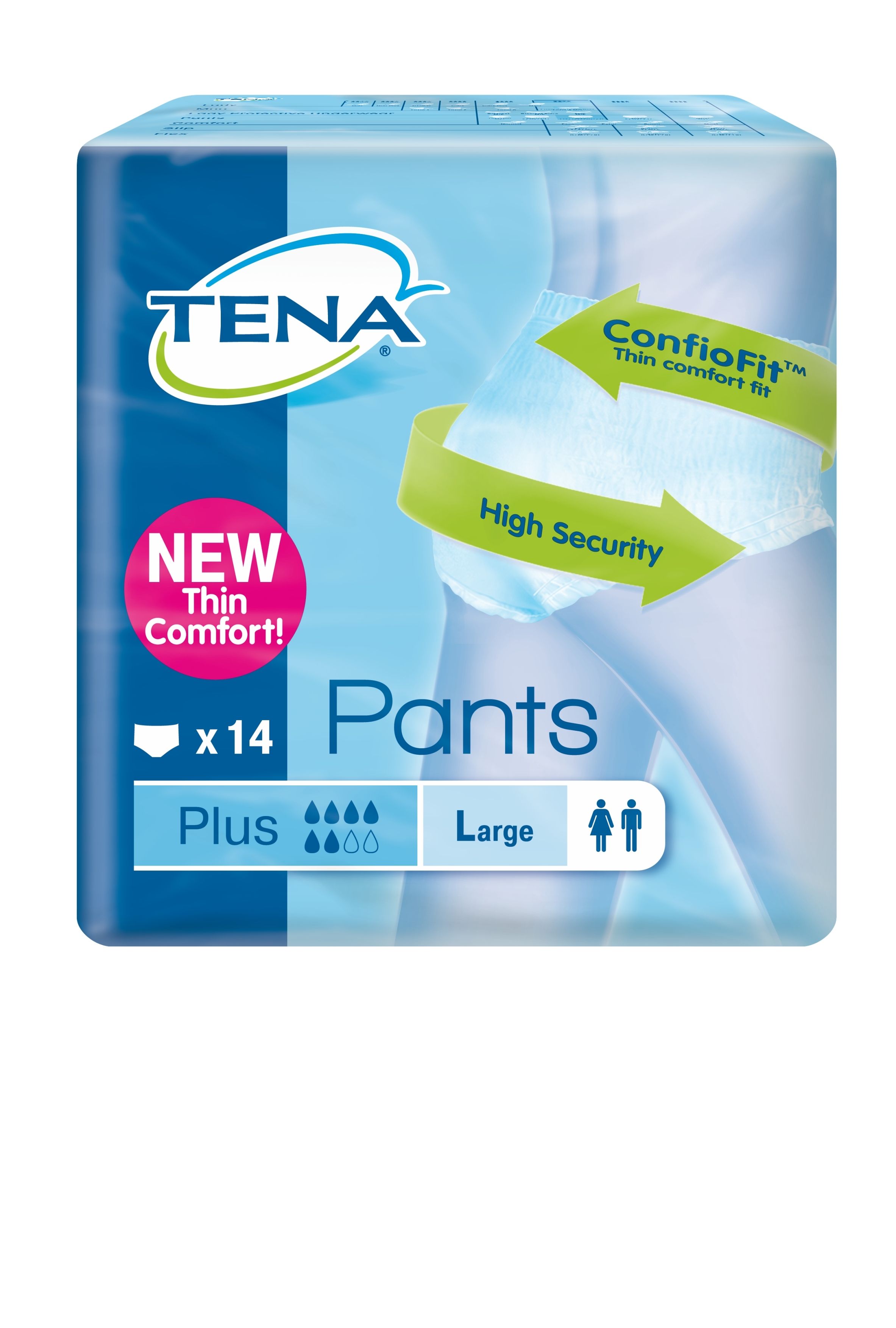 TENA Pants Plus Large pack de 14 - Para las huidas urinarias moderadas a fuertas - Tecnologia FeelDry que asegura una absorción rapida de grandes cantidades de orina - La protección queda seca y confortable en toda discreción.