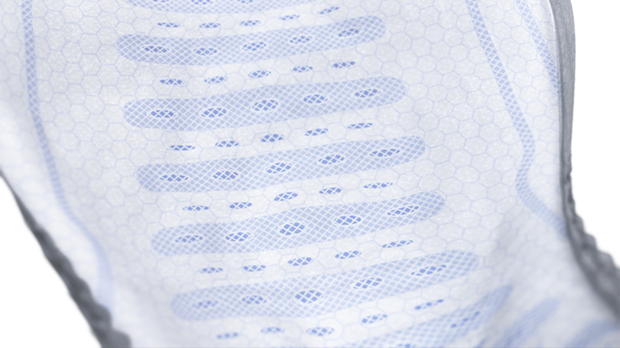 - Con el sistema Improved Fixation , la tira adesiva mantiene la protección bien en su lugar sobre la ropa interior.