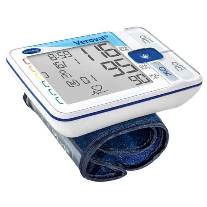 El tensiómetro de muñeca Veroval 925322 es un dispositivo automático del fabricante Hartmann que le permite medir su presión arterial de forma rápida y eficiente. Equipado con un sistema programado, el tensiómetro digital de muñeca Veroval 925322 es ideal para la medición en casa, ya que toma la presión arterial con un método oscilométrico. La compresión y la descompresión se manejan automáticamente, lo cual agiliza el uso del dispositivo. La pantalla de cristal líquido LCD hará la lectura de la información más fácil para el paciente. Los datos indicados son las presiones sistólica y diastólica, la frecuencia del pulso, la hora y la fecha en la que se tomaron las mediciones. Además, si el tensiómetro no se utiliza después de la toma, la unidad se apagará al cabo de un minuto. Las mediciones de la presión arterial se toman en la muñeca. Este tensiómetro Veroval 925322 está equipado con la tecnología ""Comfort Air"" que proporciona más comodidad al paciente, además de una comprobación de la posición del brazalete para indicar si ha sido colocado correctamente y, de esta manera, obtener valores precisos.
