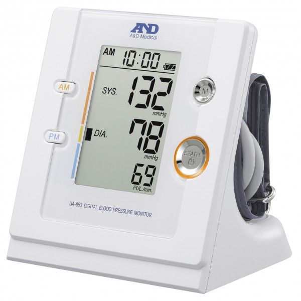 Este tensiómetro electrónico UA 853 mide la presión arterial (diastólica y sistólica) del paciente utilizando su sistema oscilométrico. También es capaz de separar la presión de la mañana y la de la tarde. Su memoria puede almacenar hasta 90 resultados. Además, usted tiene una opción de alarma para recordarle cuándo debe tomarse la presión arterial o los medicamentos. El brazalete del monitor de brazo AND Medical UA 853 es adecuado para todo tipo de personas. Este tensiómetro funciona con pilas y además cuenta con un modo de ahorro de energía: se pone automáticamente en modo de espera después de 2 minutos. Está disponible para un uso personal si necesita tomarse la presión arterial regularmente desde casa. Con este tensiómetro comprobará la comodidad de tomarse la presión cuando se encuentra relajado. Esto a la vez le proveerá resultados más fiables.