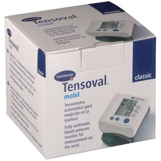 El esfigmomanómetro de muñeca- Tensoval móvil clásico Tensoval Hartmann tiene un manguito de muñeca flexible, de dimensiones: 12,5 21,5 cm. Con Cuenta con el sistema Fuzzy-Logic, la medida se realiza de forma automática cuando se desinfla el brazalete. La compresión también se realiza automáticamente. Ideal para realizar la medida en el hogar, el dispositivo mide la tensión gracias al método oscilométrico, de forma cómoda y segura.