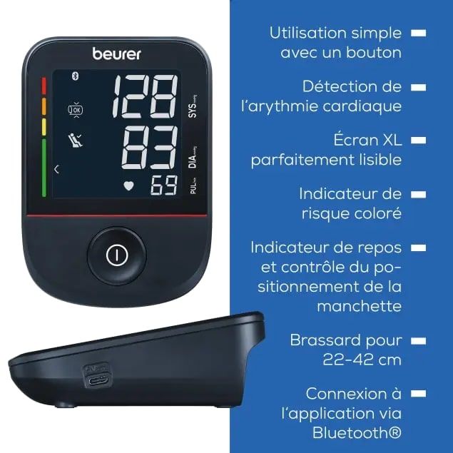 La conectividad Bluetooth le permite sincronizar sus mediciones con la aplicación gratuita « Beurer HealthManager Pro », ideal para seguir sus datos, analizar tendencias y compartir su información si es necesario.