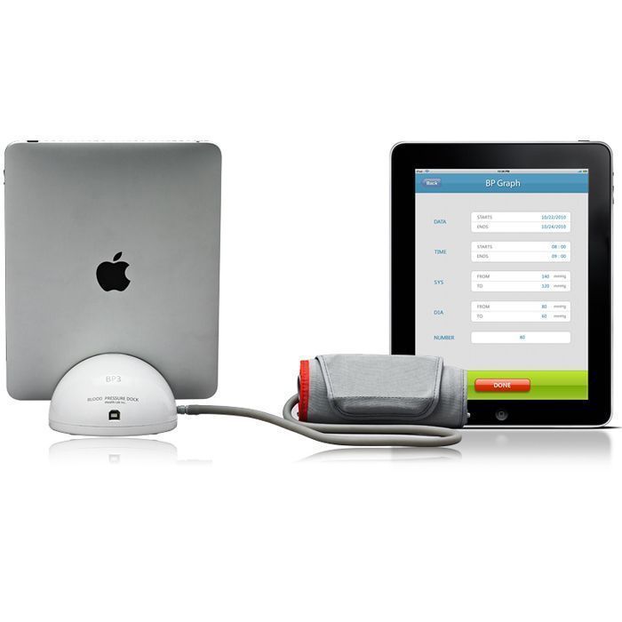 iHealth, introduce un nuevo punto de vista al cuidado personal. Un producto revolucionario, que da un gran paso adelante para hacer del cuidado medico personal aun mas personal. La base de conexión del iHealth, combinada con la aplicación BPM Mobile App, convierten su IPhone, IPad o IPod Touch en un potente monitor de presión sanguínea. Trabajando unidos representan un futuro mejor en el cuidado medico personalizado. Por primera vez, puedes ver la relacción directa entre tu tensión sanguínea y tu vida diaria. IHealth almacena la información para crear gráficos personalizados y poder realizar un seguimiento del estado de su presión sanguínea. Al entrar en area de ""gráficos"", usted obtiene información sobre las medidas, fechas y tiempos. El dispositivo iHealth mide tu presíon sanguínea, así como tu ritmo cardiaco, presentado la información de forma fácil de comprender.