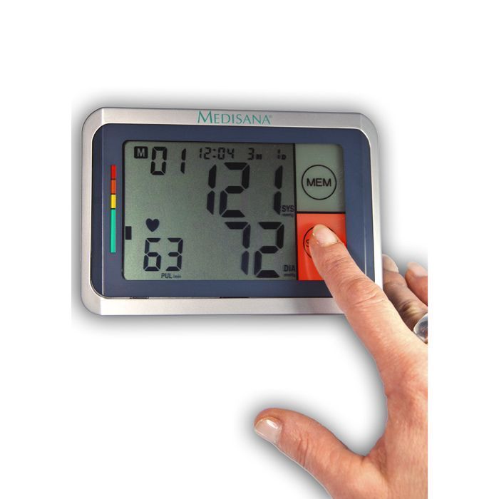 - Gran pantalla numérica para valores sístole, diástole, pulso, fecha y hora
