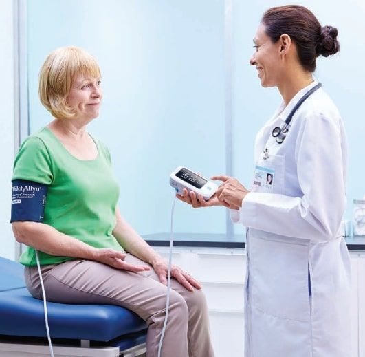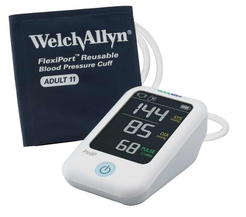El tensiómetro electrónico incorpora la tecnología Welch Allyn SureBP, que asegura medidas precisas y rápidas. Combinado con el brazalete reutilizable FlexiPort, fácilmente intercambiable gracias a su conexión específica, este dispositivo garantiza un flujo de trabajo optimizado, con un funcionamiento sencillo, una toma de medidas rápida y resultados claros.
