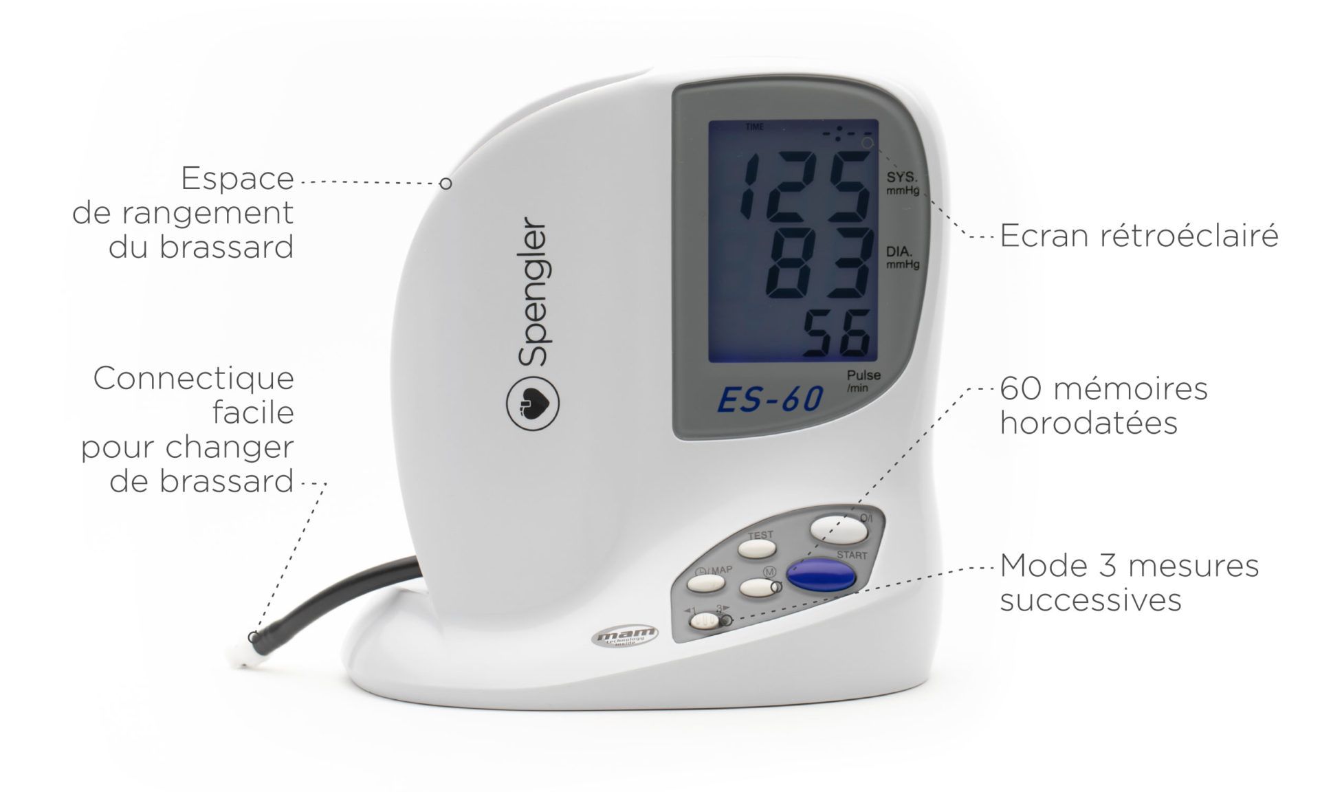 Tensiómetro electrónico Profesional Spengler ES-60 – Pantalla LCD- Método de medida 1 medida o 3 medidas (MAM)- 60 medidas- Disponible en 2 versiones- Garantía 3 años