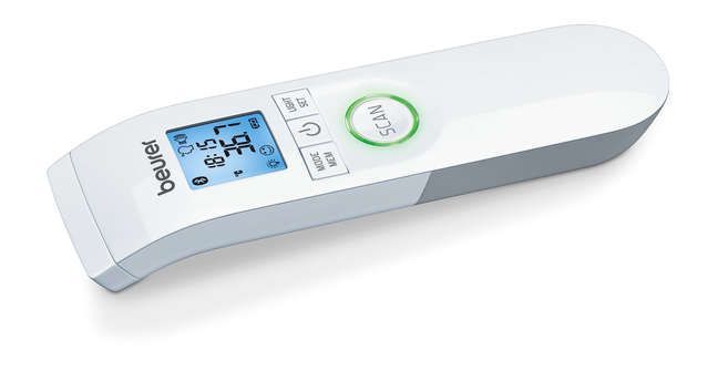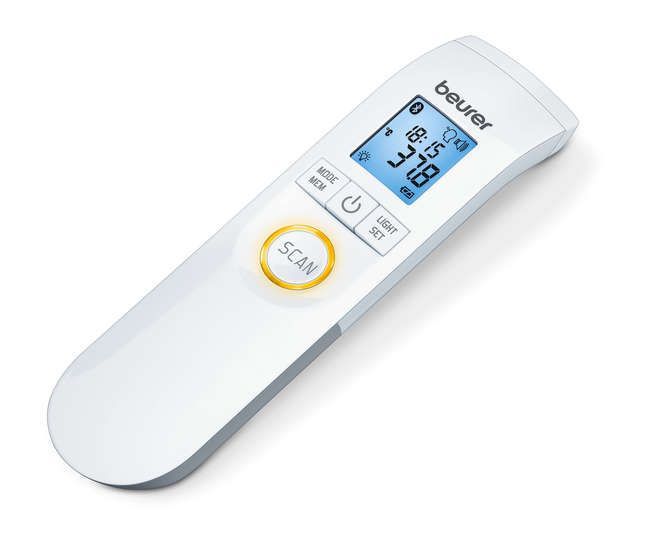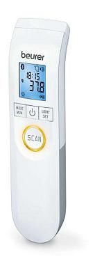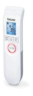 Para una medición más higiénica y segura, el termómetro FT 95 de Beurer no necesita entrar en contacto con la piel gracias a su sensor a distancia. Sólo basta con colocar este dispositivo de 2 a 3 centímetros de la frente, objeto o líquido para tomar la temperatura. Además de su cualidad sin contacto, el Beurer FT95 tiene una función Bluetooth para transferir los valores medidos a dos aplicaciones posibles Beurer HealthManager"" y ""Beurer BabyCare"". Este termómetro es compatible con IOS 9.0 y Android ™ 5.0 y Bluetooth a partir de la versión 4.0. Todos sus resultados serán almacenados y tendrá acceso a la evolución de su temperatura. Por otro lado, resulta muy práctico al momento de llevar al médico todas sus tomas. Al final de la medición seleccionable, un volumen sonoro aparece. Además, este tensiómetro sin contacto conectado FT 95 Beurer cuenta con 60 memorias para la temperatura corporal. La pantalla es perfectamente visible gracias a su tamaño XL y a su iluminación azul.