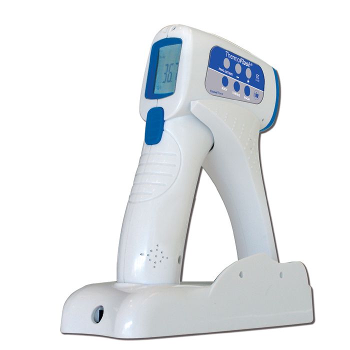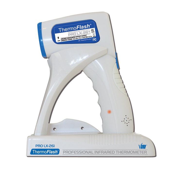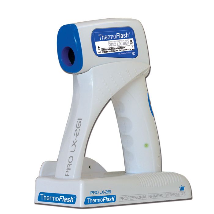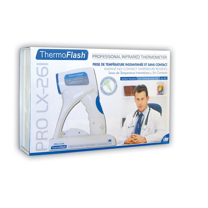 ThermoFlash, esta única y última aplicación tecnológica del infrarrojo, permite medir la temperatura corporal de forma instantánea (0,5 seg.) y sin contacto. Con el ThermoFlash PRO LX-261, ya se acabaron las dificultades de tomar la temperatura por vía axilar, auricular, bucal o rectal.