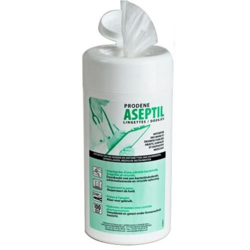 - Las toallitas desinfectantes ASEPTIL Prodene son impregnadas con un antiséptico y desinfectante para la antisepsia de manos y desinfección de objetos, superficies y dispositivos médicos.