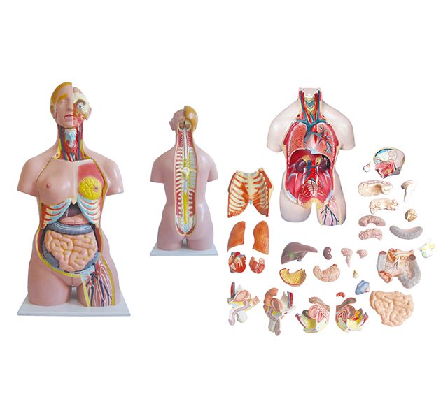 El modelo de torso humano bisexual Mediprem 85cm es un dispositivo médico tamaño natural. Resulta útil para estudiar las estructuras anatómicas humanas con una precisión óptima. Este modelo cuenta con diversos detalles distribuidos entre sus 32 piezas. Además, la espalda abierta muestra la estructura de la columna vertebral. Todo en el sistema corporal es representado con total accesibilidad en este modelo anatómico de torso humano en 32 partes.