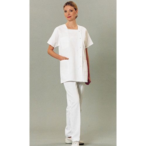 Túnica blanca Tilda Mulliez- Sin Cuello - Escote cuadrado - 3 bolsillos - longitud 75 cm - 65% algodón 35% poliéster