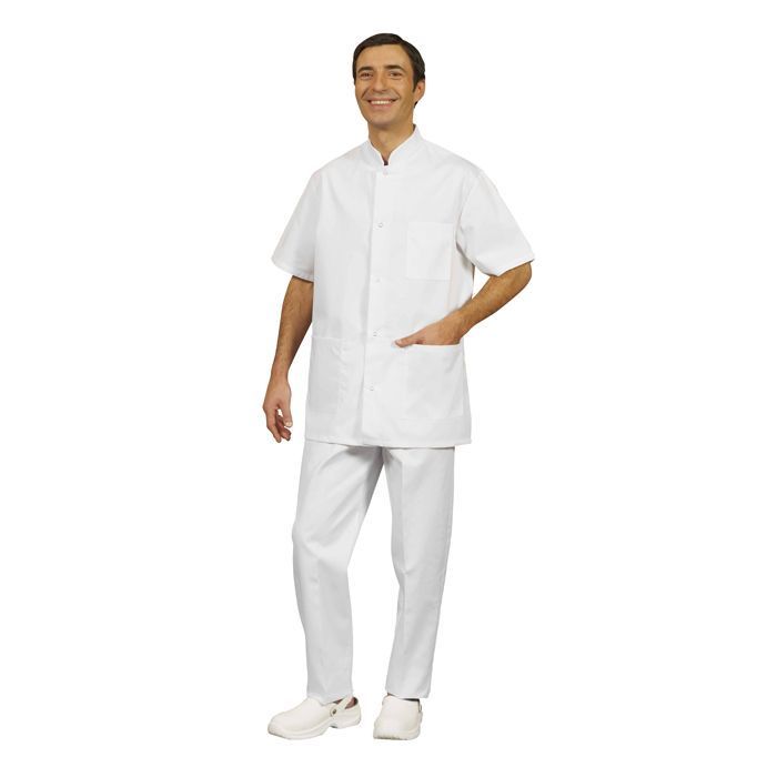 Túnica medica para hombre Trika blanco Mulliez - Cuello Mao - Mangas cortas subidas y orladas - Botones presiones - Color : Blanco óptica alta luminancia - Longitud acabada 80 cm