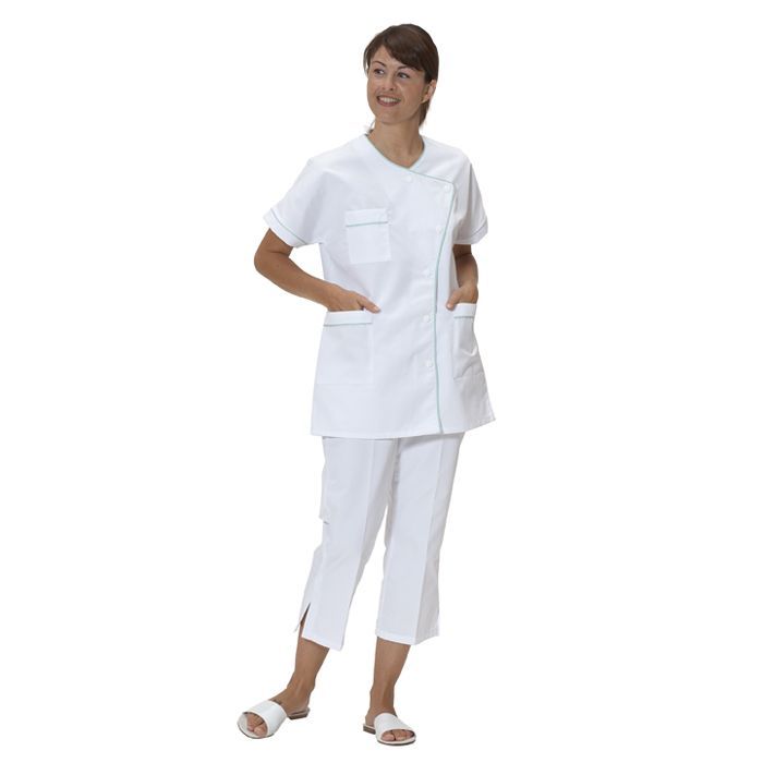 Características de la túnica médica para mujer Taffa blanco con ribete verde Mulliez: