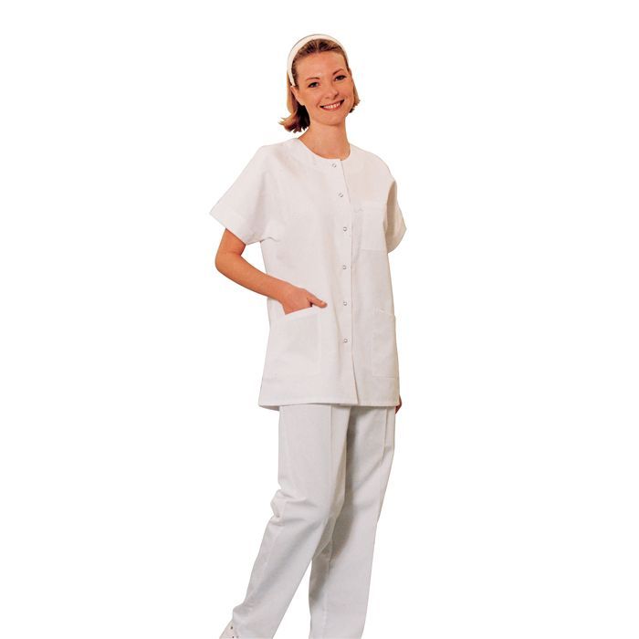 Túnica médica para mujer Toxou blanco Mulliez - Sin cuello - Escote redondo - Mangas cortas de kimono con ribete - 2 bolsas caderas en las costuras de lado - Color: blanco óptica alta luminancia