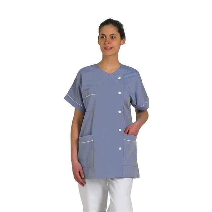 Características de la túnica médica para mujer Traxa azul con ribete blanco Mulliez: