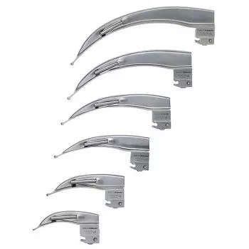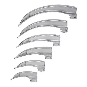 La elección de la forma también es fundamental. Las hojas curvas (tipo Macintosh) ofrecen una mejor visión indirecta de la laringe, mientras que las hojas rectas (tipo Miller) se recomiendan especialmente para lactantes o en casos de laringoscopia difícil. En nuestro sitio web encontrará ambas configuraciones para una adaptación óptima a cada morfología y a cada técnica clínica.