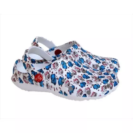 Zuecos muy ligeros ( inferior a 230g). - Super confortables y blandos, los zuecos se adaptan a su pie. - Anti-resbalón y no marquen el suelo al marchar. - Sin bacteria, sin odor. - Lavable hasta 50°C - Conviene a un uso médico. - Color / Tamaño : Conejo / 30, 31, 32, 33, 34, 35.